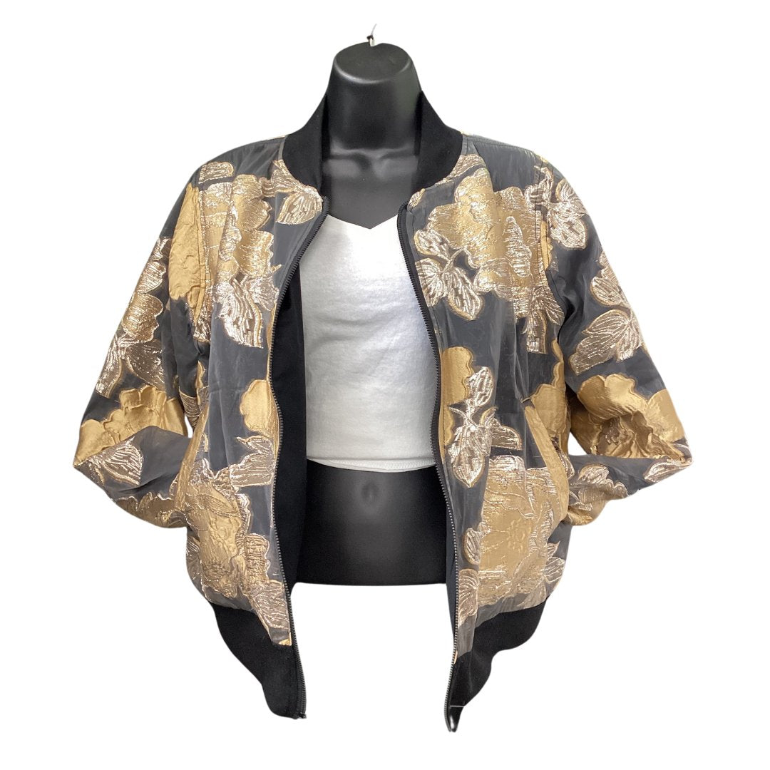 This bomber jacket, crafted from vibrant African brocade fabric, is a stylish...